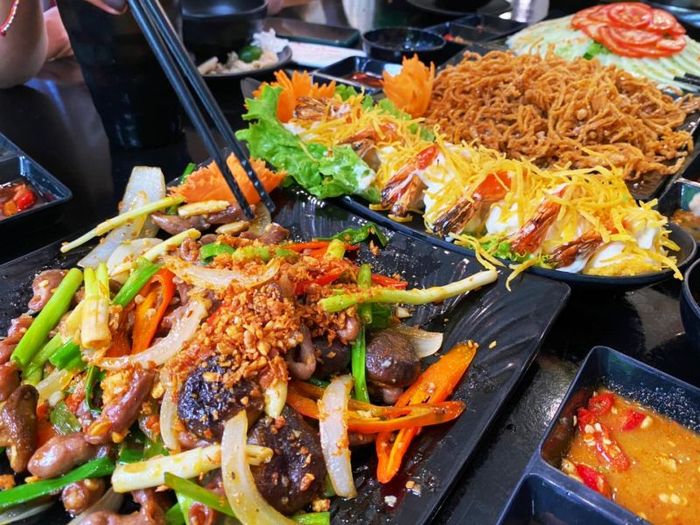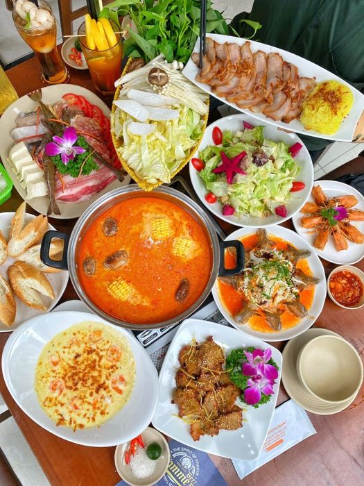Lạ Quán will surely satisfy the cravings of any hotpot lover. Here, you can find many hotpot flavors, from traditional ones like crab and beef rib hotpot with a delicate sweetness, spicy bamboo shoot frog hotpot that tantalizes your taste buds, to nutritious pigeon hotpot, and the irresistible Thai hotpot popular among the youth – a dish that has become the hallmark of Lạ Quán. In addition to hotpot, the restaurant also offers a variety of exquisite snacks such as stir-fried frog with bamboo shoots, salted fried chicken, fried mushrooms, Thai-style shrimp, smoked goose breast, and fried sausage rolls, all of which will add a delightful touch to your feast.