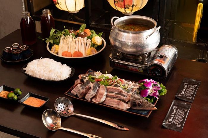 Each Phủi Quán branch is decorated in a unique style, but all share an elegant and sophisticated atmosphere. Phủi offers nutritious and flavorful hotpots at very affordable prices, making it a reasonable choice for many. The broth is aromatic, slightly sour, and rich in flavor from the bone marrow and freshwater crabs. The hotpot is accompanied by fresh pork ribs, pork cartilage, beef brisket, delicious fish cakes, and bamboo-tube snail cakes... The hotpot ingredients are exceptional.
