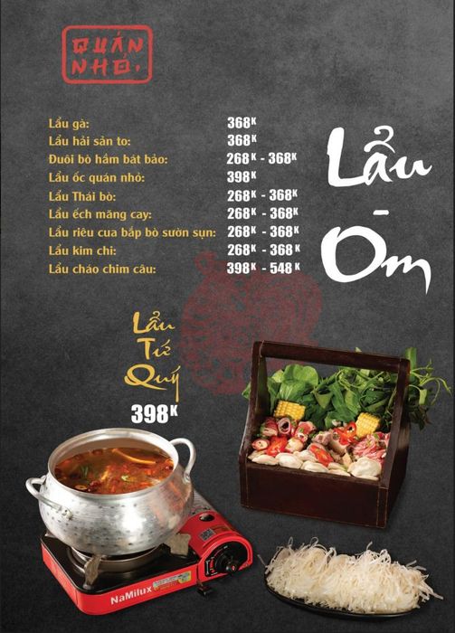 At Quán Nhỏ, not only will you experience a vibrant and colorful environment, but you'll also be able to savor a diverse menu featuring over 100 carefully crafted dishes from all over the world. Using traditional ingredients and spices, the chefs, who have over 10 years of expertise, bring a unique touch to each dish, sparking your taste buds from the first bite. Whether you're starting with appetizers, enjoying small snacks, indulging in main courses, savoring a hot pot, or trying seasonal set menus, Quán Nhỏ pays attention to every detail and creates dishes that are truly exceptional.