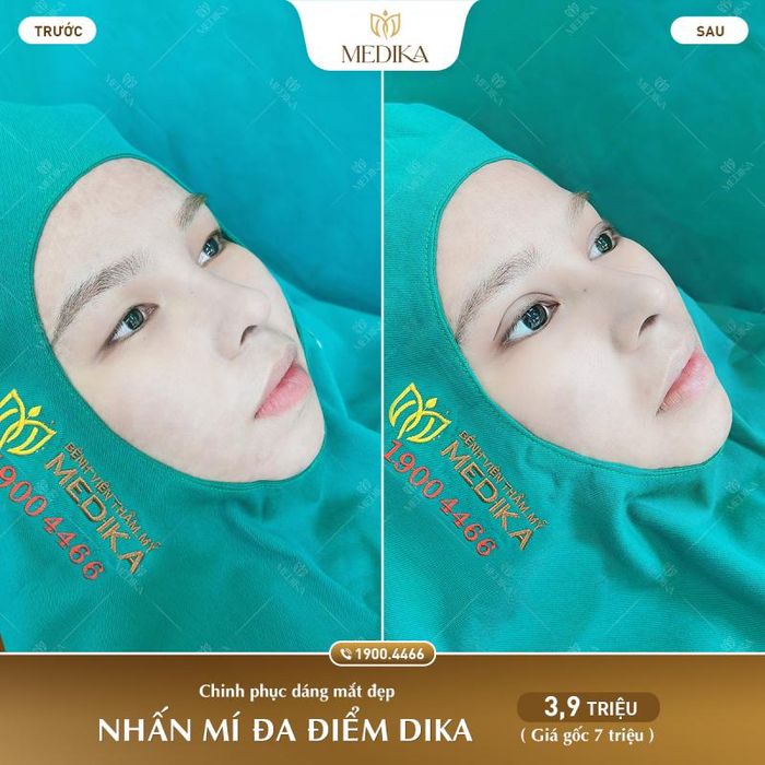 Currently, Medika Aesthetic Hospital offers several popular eye aesthetic services such as multi-point Korean eyelid surgery, eye corner enlargement, and M-plasty double eyelid surgery. The cost of eyelid surgery here is approximately 7 million VND, while other services range from 5 to 10 million VND, making them affordable for many customers.