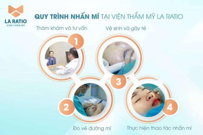 Clients undergoing double eyelid or eyelid crease surgery at La Ratio Aesthetic Institute will first receive a consultation, where the doctors will assess and recommend the most suitable service. Afterward, they will undergo a cleaning and skin treatment, followed by eyelid measurement and a minor surgical procedure. Thanks to skilled doctors and the support of modern machinery, the institute guarantees a quick recovery in about four days, with minimal pain during the procedure.