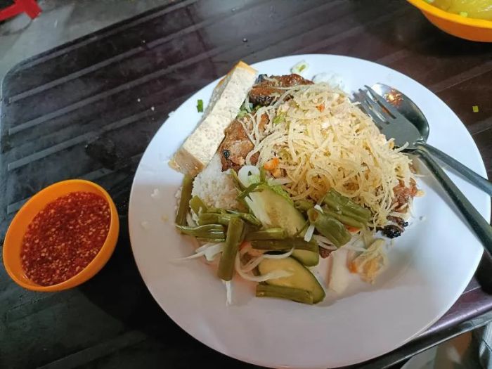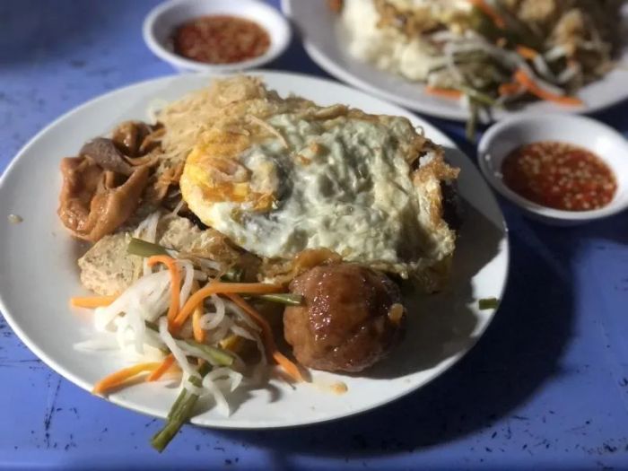 Huyen's Broken Rice Restaurant is a well-known dining spot in Binh Thanh District, Ho Chi Minh City. With a simple and cozy atmosphere, the restaurant offers a delightful and welcoming dining experience. Broken rice, a traditional Vietnamese dish, is a specialty here, known for its unique flavor and high quality. The rice is made from fragrant, soft glutinous rice, complemented with a variety of toppings like grilled pork, chicken, shredded pork skin, fried egg, and more, providing a satisfying and nutritious meal.