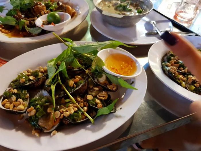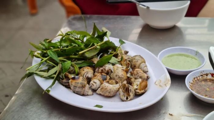 The menu at Oc Nguyen is packed with a variety of snail dishes prepared in different styles, such as tamarind stir-fried snails, stir-fried snails with bamboo shoots, steamed snails with lemongrass, and salt-roasted snails. The snails are cooked with fragrant leaves like pomelo, lime, and lemongrass, paired with a special dipping sauce that will have you praising its deliciousness. Focused primarily on snail dishes, the restaurant guarantees top-notch quality and irresistible aromas that will make you want to sample every single item on their menu.