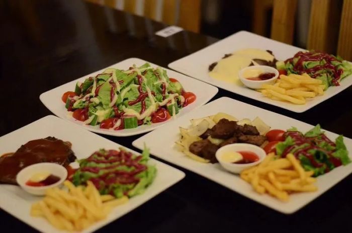 Steak Bin & Pizza is a casual dining restaurant with high ceiling windows and a menu featuring classic dishes like steak and pizza. The staff is polite, courteous, and attentive, offering a warm welcome to every customer. If you're craving Western dishes at affordable prices, this is the place you should check out. At Steak Bin & Pizza, you'll notice the chefs' attention to detail. Many people mistakenly think cooking steak is as simple as throwing it on a hot pan, only to be disappointed by the result. But in reality, preparing a good steak involves a combination of techniques, including grilling, proper meat storage, and using the right knife to cut it. A sharp, sturdy knife is essential for a perfect steak cut.
