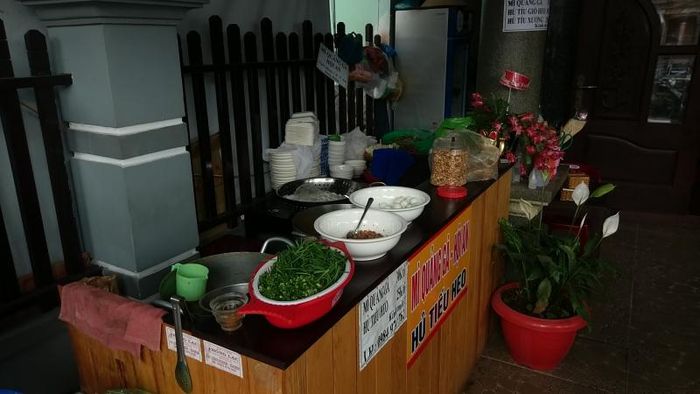 Mi Quang Vo Hang is a popular Mi Quang restaurant located in Da Lat, Lam Dong Province. Originating from Da Nang, the birthplace of this dish, Mi Quang Vo Hang has evolved to cater to the tastes of Da Lat residents. The dish includes noodles, pork, shrimp, egg whites, fried shallots, spring onions, fresh herbs, roasted peanuts, rice crackers, and a rich broth that creates a distinctive and unforgettable flavor.