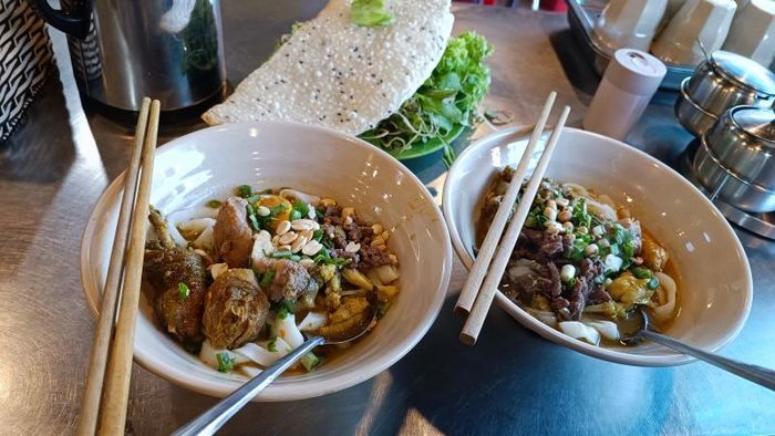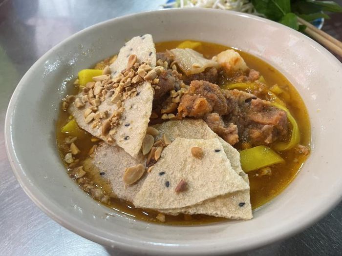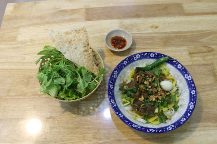 Another well-loved mì Quảng spot in Da Lat, Mì Quảng - Ánh Sáng Village offers soft, medium-thickness noodles. A complete bowl of mì Quảng includes essential ingredients like meat, caramelized shrimp, quail eggs, peanuts, and fresh herbs. The broth, simmered from bones, is naturally sweet and full of depth. The service is attentive, with quick dish preparation, which explains the constant stream of customers. In addition to its delicious taste, the dish is beautifully presented, making it tempting even before the first bite.