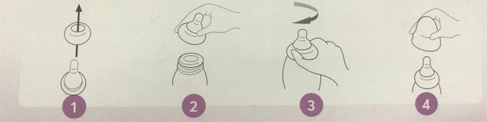 - Step 3: Gently press the nipple to fit securely into the screw cap.