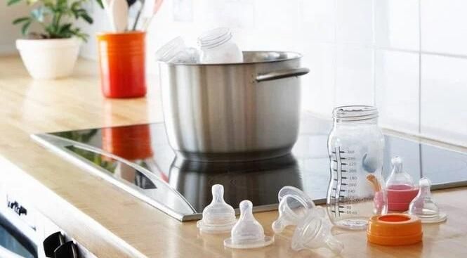 - If using glass bottles, place them in the cold water first. Wait for 5-10 minutes after the water boils before adding the nipples, caps, and other plastic parts. Cover the pot and boil for an additional 3-5 minutes. Once the water cools down, use tongs to remove the items.