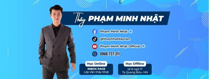 Mr. Phạm Minh Nhật is one of the most famous teachers today. He is the most followed English teacher on social media, with his fanpage having over 1.3 million followers and his personal Facebook boasting more than 460,000 followers. Notably, Mr. Nhật is the first Literature teacher to receive the YouTube Silver Play Button. He is not only a teacher with millions of views but also the head of a tutoring center serving tens of thousands of students. Mr. Nhật is known for his detailed lessons on each literary work and topic, along with many tips that help students achieve scores of 8 or 9 in the Literature section, the highest marks in the National High School Exam.