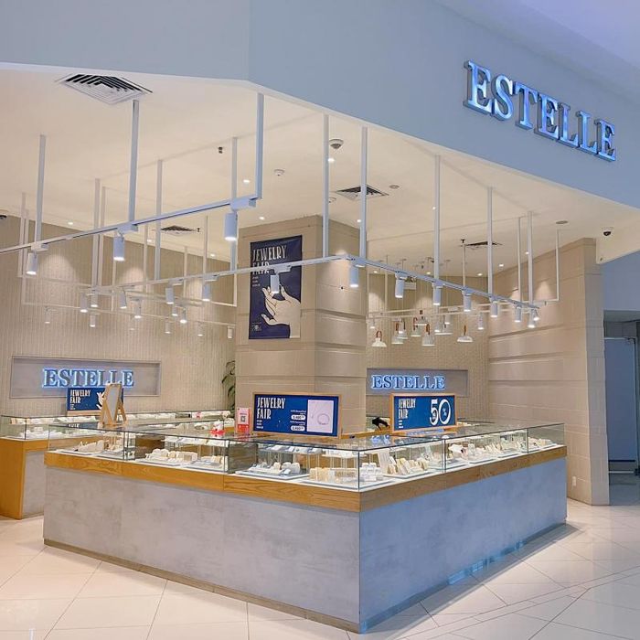The showroom itself adds to the overall experience with its luxurious display cabinets and spacious aisles, providing a comfortable environment for every customer. The price range for wedding rings at Estelle is between 4,000,000 and 18,000,000 VND, depending on the style—whether plain or diamond-encrusted.