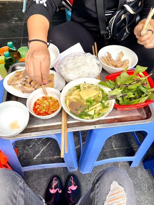 With over 20 years of experience in serving duck noodles, 115E Phung Hung Duck Noodles has long been a top choice for street food lovers in Hanoi. In fact, it is one of the few places that serve delicious duck noodles from early morning. Upon entering the shop, you'll be intrigued by the fresh ducks on display, along with various duck parts such as hearts, feet, and wings, set aside for those who enjoy a more diverse taste experience.