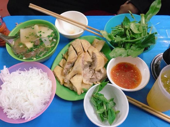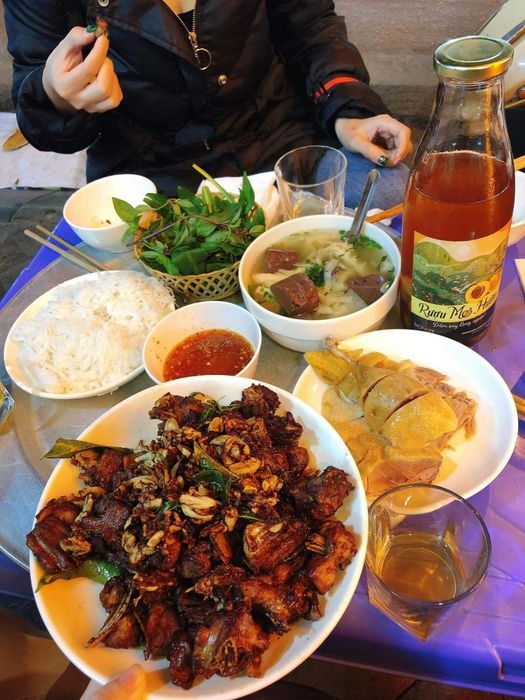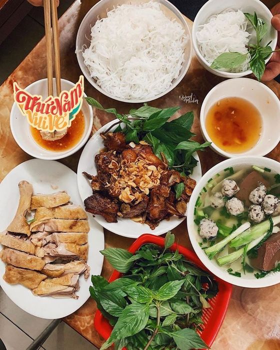 If you're in the Hoan Kiem district, you can’t miss Thuy Luong Garlic Roasted Duck on Hang Luoc Street. This spot is famous for its wide variety of duck dishes, but most customers flock here for the sizzling hot duck platter. The roasted duck is marinated with a blend of flavorful spices, including ginger and garlic, with onions to neutralize any gamey taste. The crispy, golden duck pieces are served hot and pair wonderfully with noodles and bamboo shoot blood soup. The dipping sauce made with garlic and fish sauce is an irresistible treat when you dip the roasted duck, leaving a lasting impression.