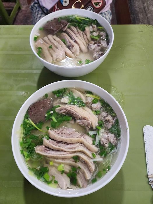 Minh Thu's Traditional Goose Noodles is located right on the main street, next to Nhật Cường, opposite Thế Giới Di Động, so it’s easy to find. The space is compact but comfortable, allowing for a steady flow of customers without long waiting times. The restaurant serves from morning until noon, then again in the late afternoon and evening, with seating available both indoors and on the sidewalk. The bowls of noodles are hearty, with goose, bamboo shoots, and blood pudding. The broth is rich and flavorful, not greasy, and perfectly balanced.