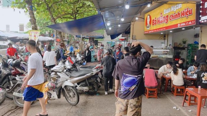 Ba Hang Duck Noodles is a popular eatery located in the food paradise of Nghia Tan Market, often receiving high praise from social media users on Facebook. The shop operates from 9 AM until 11 PM, offering a cozy sidewalk seating area along with indoor seating options.