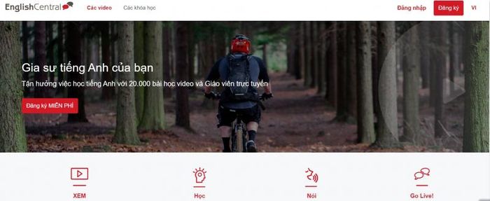 Nếu muốn luyện nói tiếng Anh trực tiếp với người nước ngoài nhiều hơn, bạn có thể sử dụng trang web EnglishCentral. Đây là một nền tảng học tập thương mại rất phù hợp cho việc học tập cá nhân, thực hành nói và sử dụng tiếng trong lớp hoặc tích hợp trong một chương trình giảng dạy. Trang web của EnglishCentral bao gồm nhiều video quảng cáo, phim tài liệu, đoạn giới thiệu phim, bản tin và bài phát biểu mang lại cơ hội nghe và nói mở rộng, điều cần thiết cho việc tiếp thu ngôn ngữ. ác nhà giáo dục không thể cung cấp đủ thời gian trên lớp hoặc thậm chí các nguồn lực phù hợp, EnglishCentral có thể giúp thu hẹp khoảng cách.