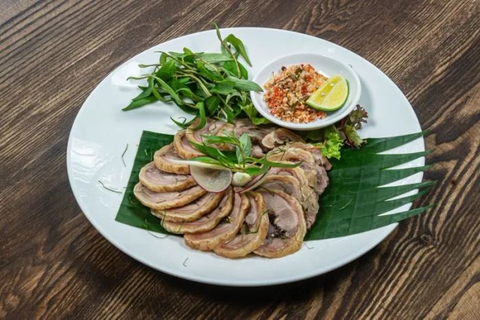 Beyond the charming decor, the food is another key factor that draws large crowds to Hẻm Quán. This restaurant specializes in Saigonese cuisine. When you visit Hẻm Quán, be sure to try dishes like "Bò Một Nắng" (sun-dried beef), ant salt, stir-fried quail eggs with tamarind, Sichuan-style boiled beef, "Phá Lấu" (braised pork offal), and grilled pork rolls in rice paper with herbs. These popular dishes are marinated to perfection, prepared with great care, and are sure to please a wide range of tastes. After a tiring day or week, there’s nothing better than gathering with friends and family at Hẻm Quán to enjoy these tasty dishes, sip on some beer, and engage in lively conversation while watching the world go by.