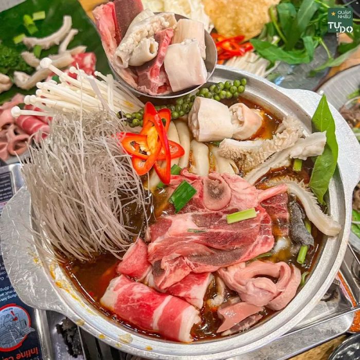 Born within the largest Quán Nhậu Tự Do chain in Hanoi, Tự Do brings a blend of modern, youthful energy to the drinking scene while evoking a nostalgic, classic vibe, all while keeping the spirit of freedom. At Tự Do, you will get the chance to enjoy the unique ‘Clay Pot Beef Hotpot’ alongside a selection of exquisite beef dishes. As society advances, kitchen appliances become more varied, with electric stoves and induction cookers gradually replacing traditional clay pots.