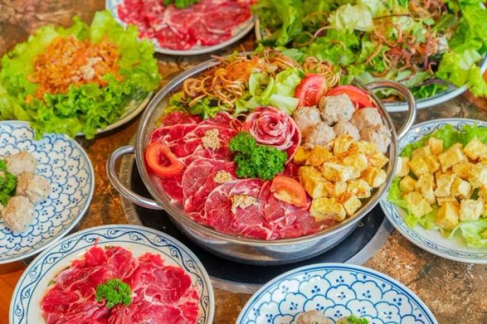 In addition to grilling, Lẩu nướng Đường Tàu also offers a mouthwatering hot pot. A hot pot set, priced at 390k, includes a variety of dipping items like shrimp, squid, octopus, beef belly, clams, and tofu. The hot pot broth has a deliciously balanced sweet and sour flavor, and the aroma is irresistible. Not only are the grilled meats fresh, but the seafood for the hot pot is also incredibly fresh and tasty. However, the restaurant is located near the train tracks, so it might be a bit tricky to access. You can either walk across the tracks or park at the nearby park and cross over.