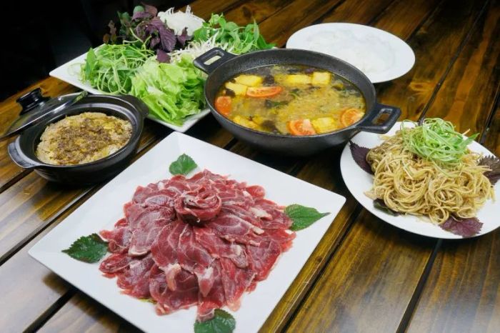 Customers love Bò Tơ Quán Mộc largely because of its delicious offerings. As the name suggests, Bò Tơ Quán Mộc specializes in beef, particularly fresh young beef. True to its name, the restaurant sources its ingredients from young cattle – a dish once a specialty of the river regions, which sparked the "young beef from Tây Ninh" craze in Hanoi. Over time, this dish from Bò Tơ Quán Mộc has become a unique delicacy, taking on its own distinct flavor, reflecting the essence of the Northern capital.