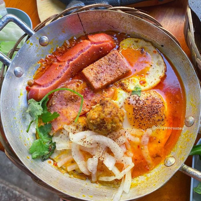 - Step 5: Heat 1 tablespoon of vegetable oil in a pan, and sauté the garlic and onion until fragrant. Add diced tomato (peeled) and one piece of pâté. Pour in enough water, simmer on low heat for 5 minutes, then season with salt, fish sauce, and pepper.