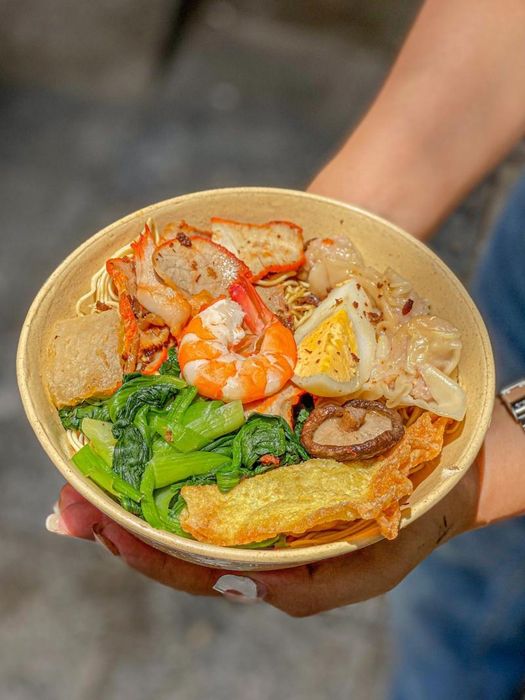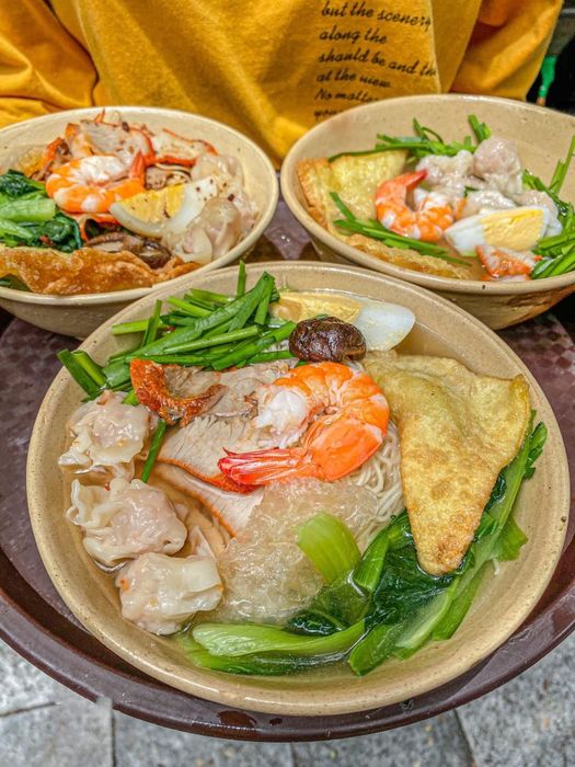 Although it may take a little time to wait, guests who come to Lan Wonton Noodles - 6 Nguyễn Biểu are always drawn to the hot and aromatic noodles served here. The dish is praised for its clear broth, which is rich and sweet, made from shrimp and slow-simmered bones. The bowl is generously filled with fresh ingredients: sweet and sour marinated char siu pork, large plump shrimp, soft dumplings, crispy golden fried wontons, tender liver slices, soft-boiled eggs, and chewy pork skin. Enjoying a bowl like this feels like indulging in a delightful gourmet experience, leaving one completely satisfied.