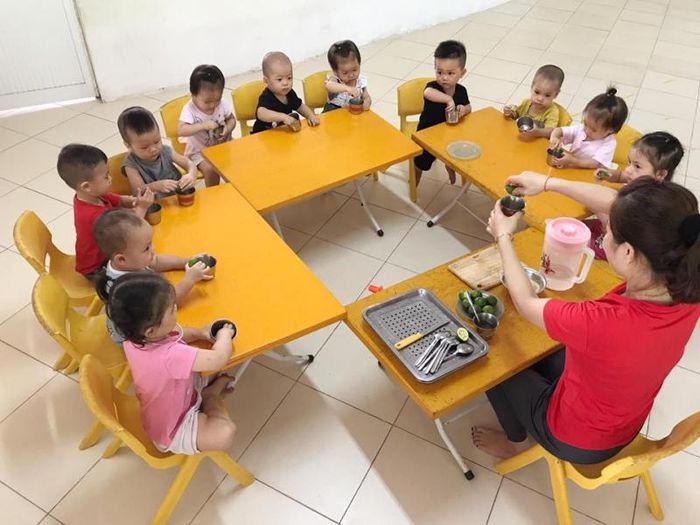 Nutrition is a key concern for parents when choosing a preschool. At Hoa Hướng Dương Preschool - Dong Quang Branch 1, we provide a scientifically designed and age-appropriate nutrition plan. The menu is crafted based on the caloric needs and micro-nutrient requirements of children at each age, with special meal plans available for children with specific dietary needs. All food is sourced from trusted suppliers, prepared in a modern kitchen with a one-way system, and served by professional chefs.