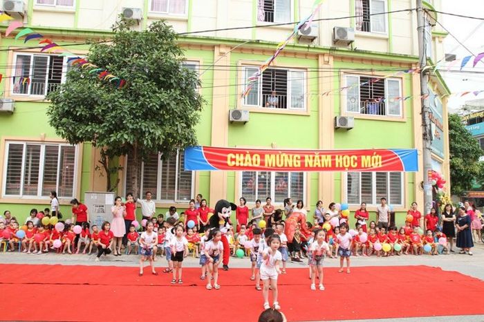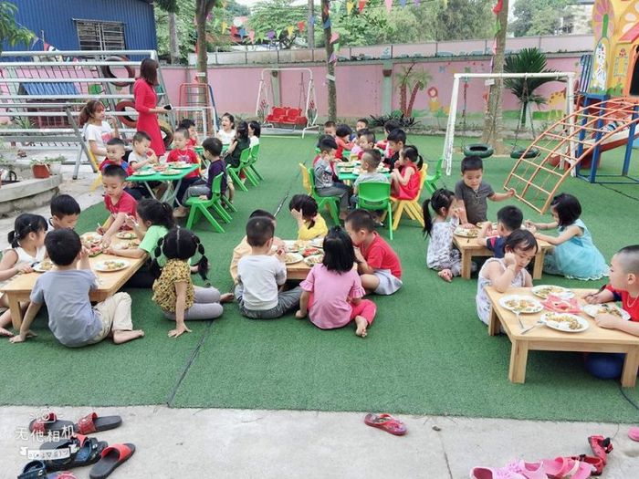 Facilities: The preschool spans an area of 1,358m2 with essential buildings that meet the requirements for child care and education. The central campus features two three-story buildings with 9 classrooms. The school has two locations: one in Group 6, Dong Quang Ward, Thai Nguyen City, and another in Hoang Van Thu Ward, Thai Nguyen City. The learning environment is safe, green, clean, and designed to meet the standards for educational reform.