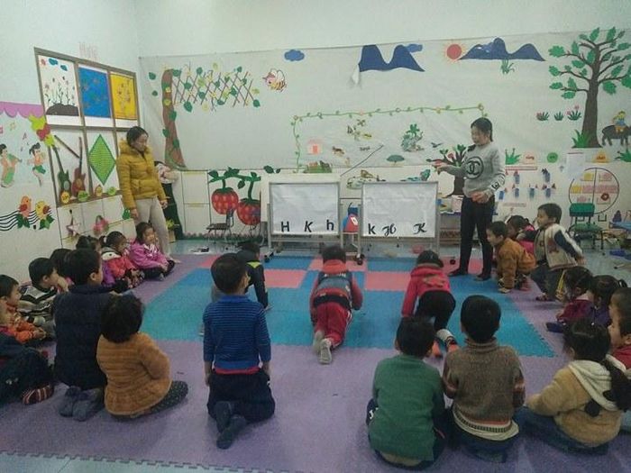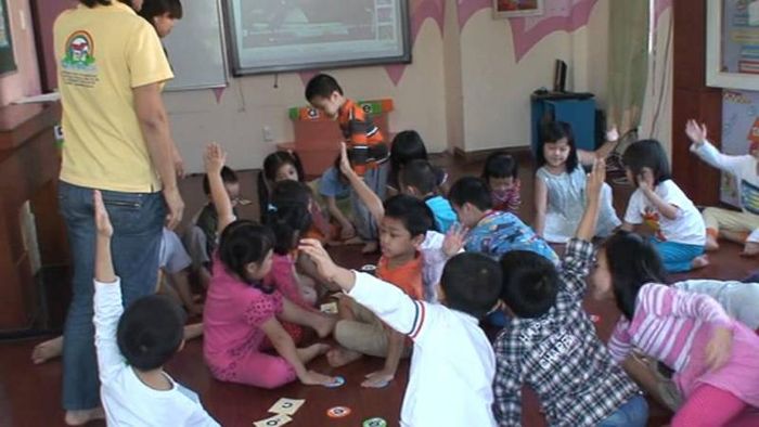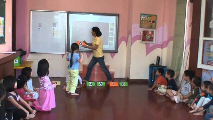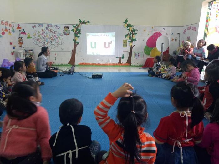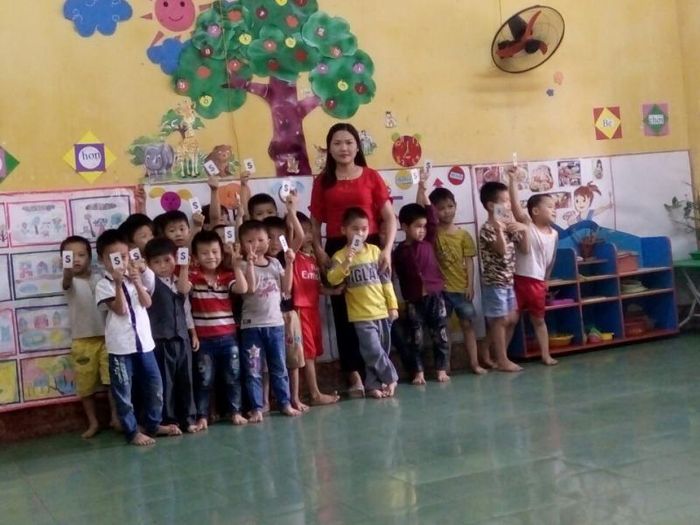 - The teacher hangs a picture on the board. She calls a child up, and the child finds the letters they have learned and reads them aloud. If the child doesn't identify the correct letter or pronounce it correctly, the teacher calls another child to continue and corrects the pronunciation. Then, the teacher proceeds to hang more pictures and lets the children continue playing.