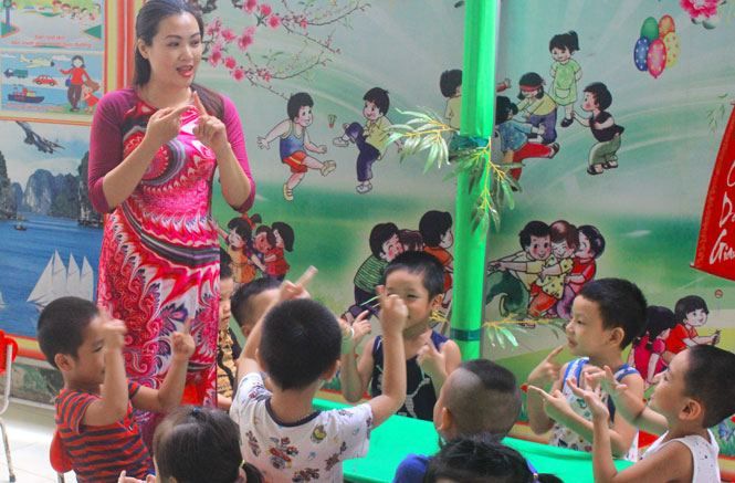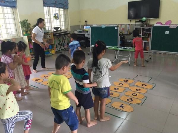 - The teacher organizes the children to play: The teacher calls out: 'House of letter e, house of letter ê, house of letter â, house of letter e, ê, â.'