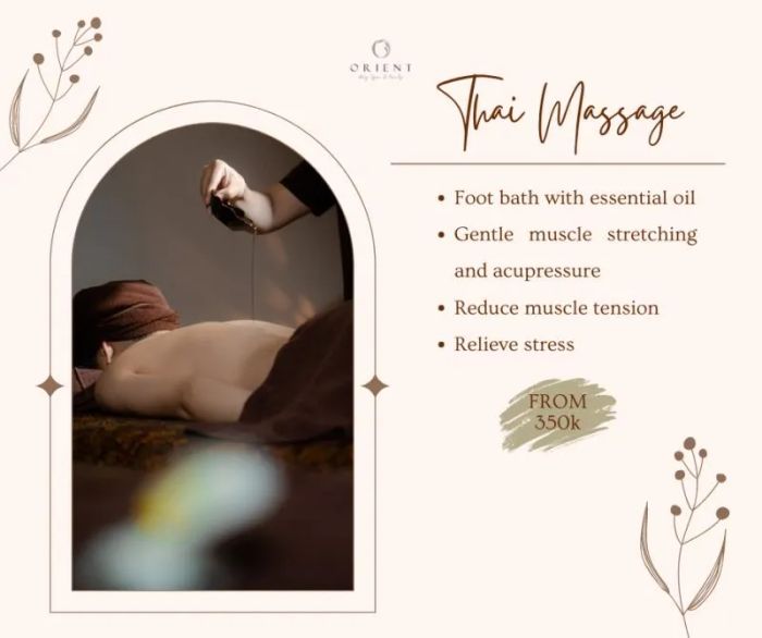 - Body Massage: A variety of techniques, including essential oil massage, hot stone therapy, deep tissue massage, and Thai massage.