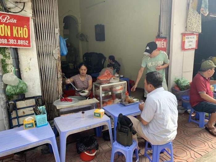 Moreover, customers highly recommend the stir-fried eel noodles, which are enhanced by the addition of peanuts and fried shallots, making the dish even more irresistible. Many patrons come back for this delicious dish. The menu lists the prices at 30,000 VND for a bowl of soup, 40,000 VND for a bowl of noodle soup, and 45,000 VND for a bowl of mixed noodles. With such affordable prices, it's no wonder this place attracts a loyal crowd of eel noodle enthusiasts. Located in the heart of the old quarter and open all day, Miến Lươn Đông Thịnh is easy to find and definitely worth a visit.