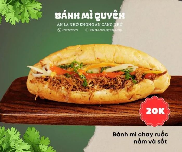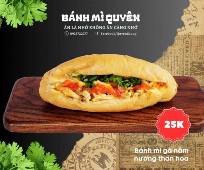 Quyen Sandwich is a new, popular sandwich brand in Hanoi that has recently gained attention on international travel websites, receiving praise from locals for its traditional fillings with a unique twist. The sandwiches are very affordable, priced between 25,000 VND and 35,000 VND.