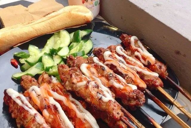 In addition, Hoàng Đức Skewered Meat Bánh Mì offers a variety of drinks, including lemon tea, peach tea, soy milk, and their signature kumquat tea—a must-try flavor. The grilled skewered meat is perfectly cooked and placed in the bánh mì, complemented with chili sauce and fresh vegetables. This familiar yet unique snack has long been a favorite quick bite among local students, and has become a staple of the food scene here.