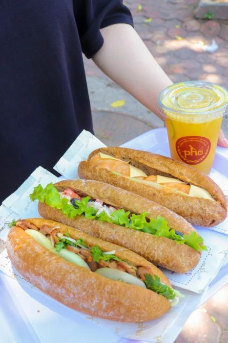 Phố Bánh Mì’s menu includes a variety of sandwiches and fresh seasonal fruit juices. Each item is prepared daily to maintain consistency in taste and service. In addition, they cater to families with a special kid-friendly bánh mì, featuring a premium soft bread crust, fresh sausage, cheese, and a sweet honey mustard sauce.