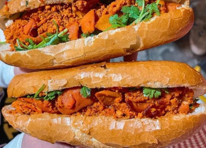 With dozens of handmade fillings paired with a signature sauce, this bánh mì offers a truly unique experience for bánh mì enthusiasts. Vietnam’s Dân Tổ Bánh Mì boasts a special, exclusive sauce recipe that guarantees a consistent flavor across all their stores nationwide, with a delivery network covering every street corner. This dish combines novelty, nutrition, and affordable prices. Plus, Dân Tổ offers a variety of beverages to complement your bánh mì, so be sure to try them out!