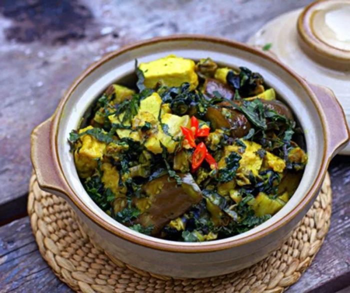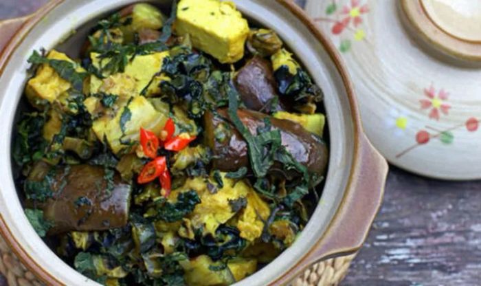 - Step 4: Once the pork ribs and snails are tender, add tofu, eggplants, tomatoes, and snails. Season with shrimp paste, fermented rice, and the prepared spices. Cook for about 5 minutes, then turn off the heat.