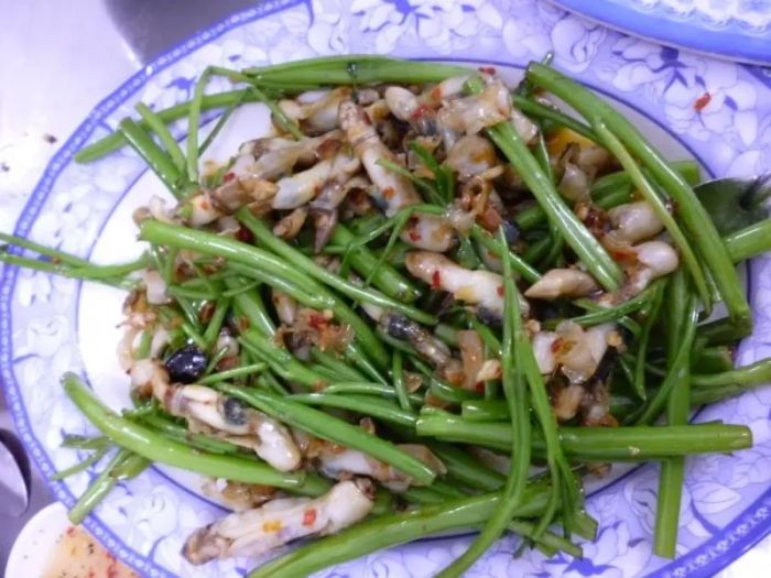 - Step 5: Transfer the stir-fried clams to a plate, sprinkle with peanuts, and serve the delicious stir-fried razor clams with water spinach.