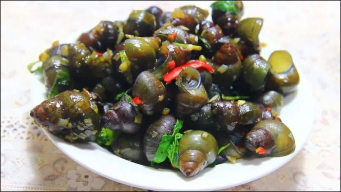 The dish of fragrant snails combined with the sourness of tamarind, sweetness from sugar, and spicy kick from chili powder, together with the rich flavor of seasonings and the crispy, sweet snail meat, will surely leave a lasting impression due to its simple yet delicious preparation.