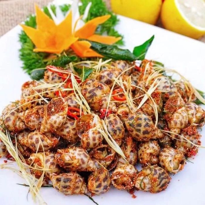 Starfruit snails are a type of marine snail with a medium size and distinct ridges on their shells resembling the shape of starfruit. These snails are commonly found along the coastal provinces in central Vietnam, such as Phan Thiết and Quy Nhơn. Their flesh is naturally sweet, tender, and aromatic.