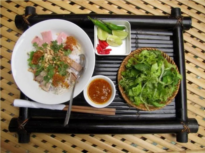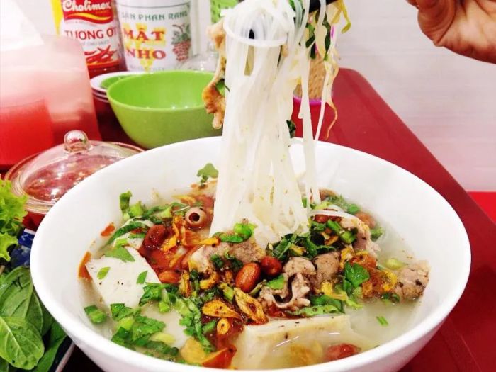 This is one of the most popular dishes in Phan Rang. You can find shops serving fermented fish sauce noodles along almost every street, large or small. Even before you step into a shop, the savory smell wafts through the air, making your mouth water. While the scent may put some off, it's the very same aroma that has a loyal following. Many people are drawn to it because of its unique and pervasive fragrance.