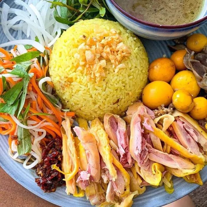 Phan Rang has many restaurants serving this iconic dish, and travelers passing through during lunch or dinner often stop to enjoy a plate of Phan Rang Chicken Rice. The sun-soaked climate here makes the free-range chicken meat firm and flavorful. A special dipping sauce, made from fish sauce mixed with crushed chili and garlic or roasted chili salt, adds a unique taste to the dish.