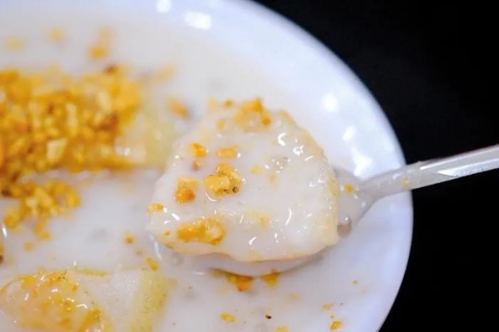 Grilled Banana Sweet Soup is a simple yet special dessert that has won the hearts of many. The dish features the deep sweetness of firm bananas that have been perfectly grilled. Its distinct flavor profile comes from the balanced use of coconut milk, creating a delightful sweet soup that defines Phan Rang's banana-based dessert.