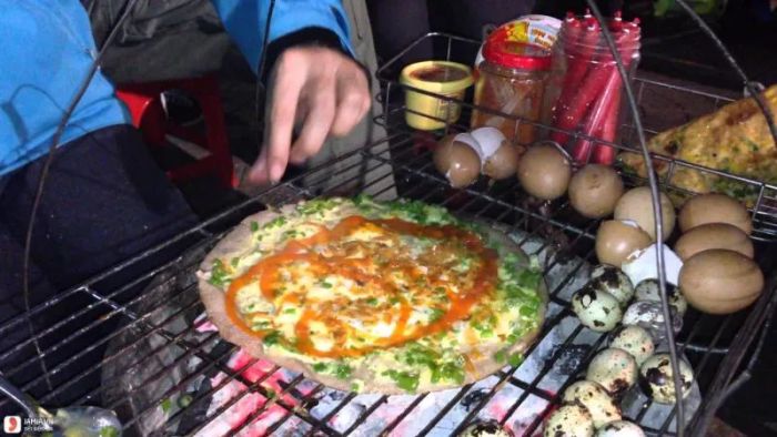 14. Grilled Rice Paper with Shrimp Paste, Egg, and Onion