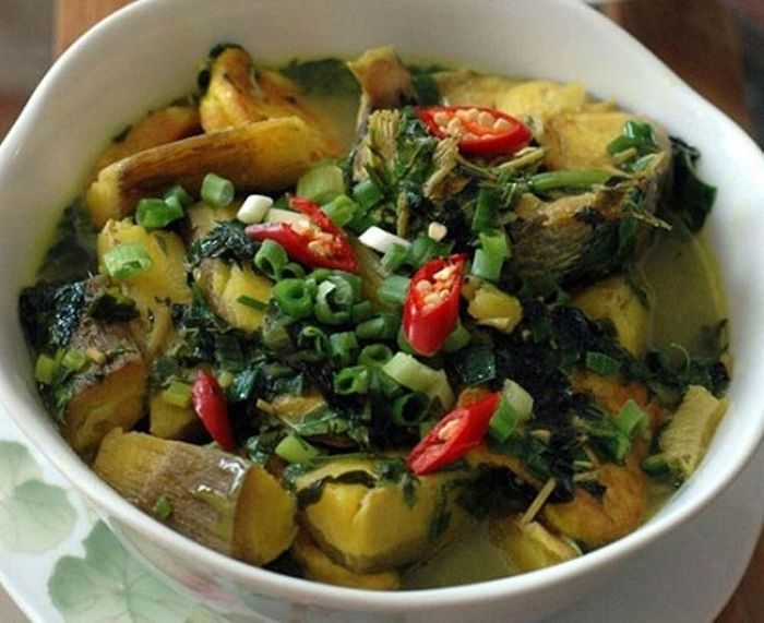 The sweet flavor of snakehead fish combined with taro root creates a unique and delicious taste in this fish soup.