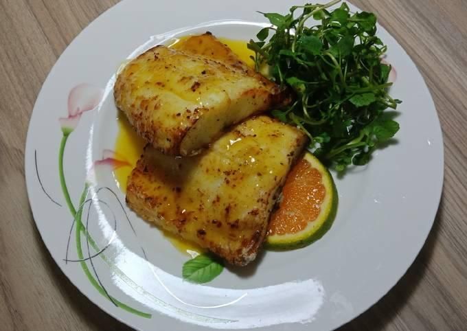 - In a pan, melt the butter and sauté the fish fillets until fragrant. Add the orange mixture to the pan. Stir well, reduce the heat, and cook until the fish is done. Season to taste.