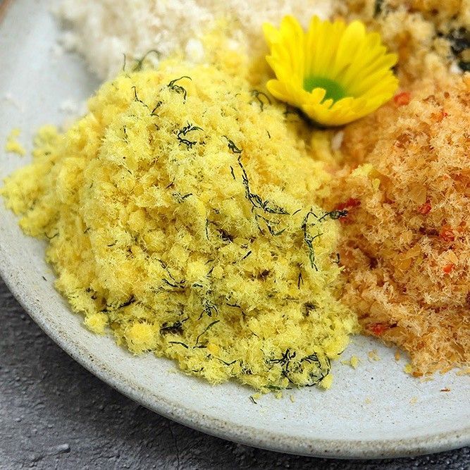 - Heat a pan with 3 tablespoons of annatto oil. Once the oil is hot, sauté the minced garlic and shallots until golden, then remove them and set aside. Keep the oil in the pan. Add the shredded fish and cook on low heat for about 30 minutes, stirring until the fish becomes dry and fluffy. Season with 1 tablespoon of fish sauce, 1 tablespoon of sugar, and 1 tablespoon of seasoning powder. Continue to stir for another 15 minutes on low heat, adjust seasoning to taste, and add 1/2 teaspoon of ground pepper. Let the floss cool completely, then store it in an airtight jar for later use.