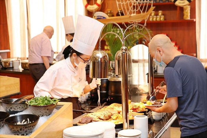 With a capacity of 1,500 guests and over 200 dishes, the International Buffet is like a miniature culinary world in the heart of Hanoi. While it features traditional Vietnamese street foods such as fish noodle soup, crab noodle soup, and banana stem with snails, it also offers international specialties like tuna sushi, fresh squid sushi, Chinese-style roast duck, and Russian-style grilled meats. A unique aspect of Sen Tây Hồ is its bustling seafood market section, where guests can handpick fresh seafood for an unforgettable meal.