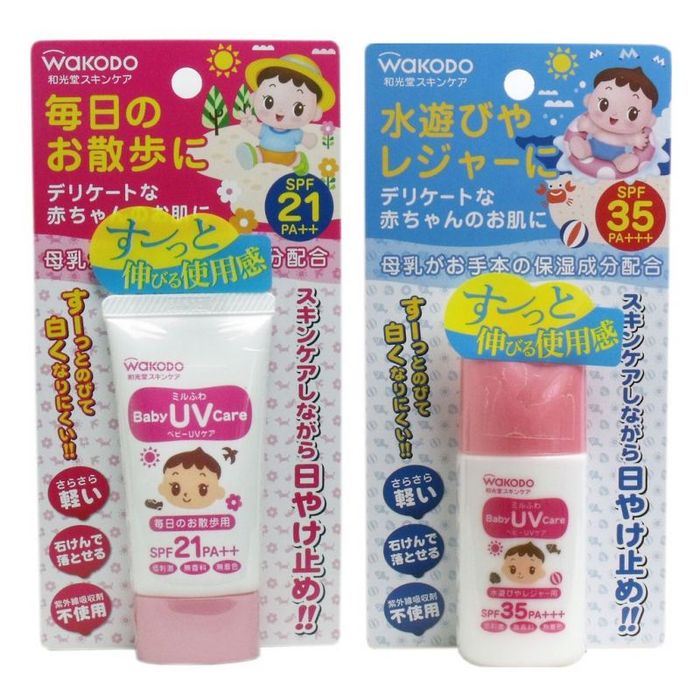 If you're a fan of Japanese products, don't miss out on one of the best sunscreens from Japan – WAKODO. Produced by Wakodo, a leading company specializing in products for mothers and children, this sunscreen is designed to protect your baby’s delicate skin from the harmful effects of UVA and UVB rays.