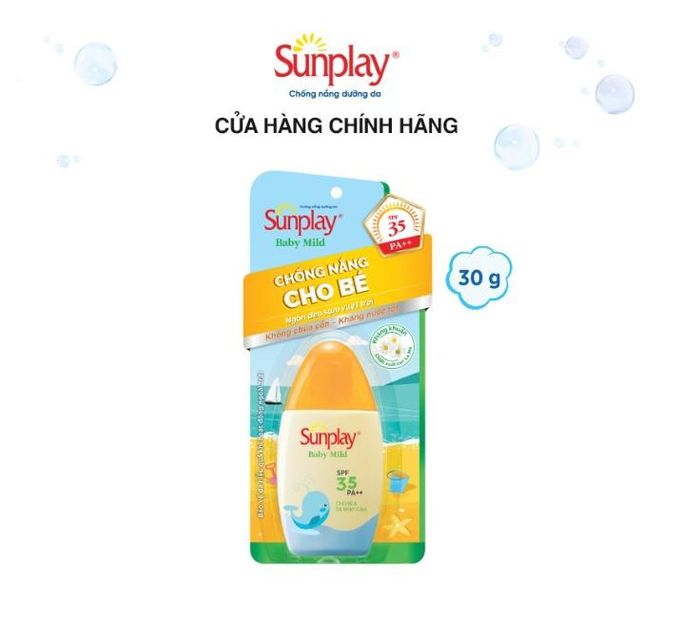 - Sunplay Baby Mild sunscreen offers moderate sun protection with SPF 35 and PA++, blocking UVB rays and reducing UVA damage by up to 95%. This level of protection is suitable for outdoor activities and picnics. It is very safe for children's skin, free from alcohol and parabens to avoid irritation. The sunscreen also has a waterproof formula, ensuring long-lasting sun protection.