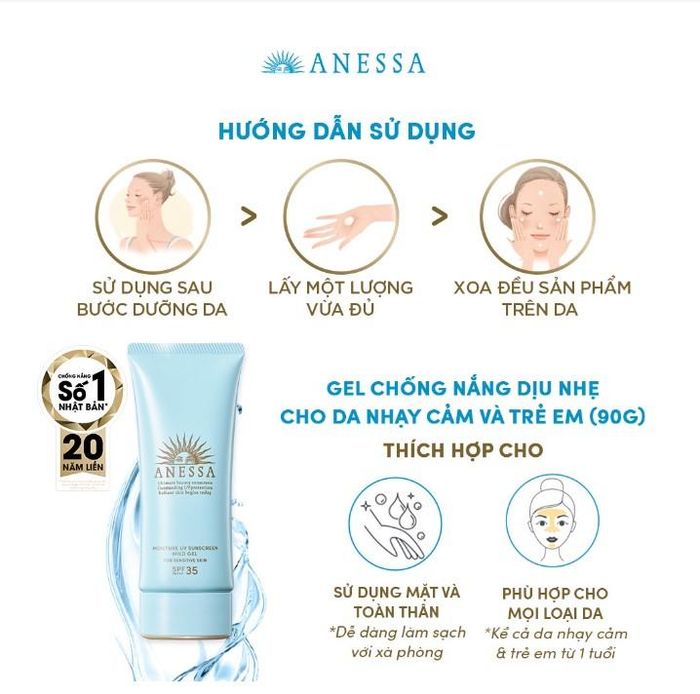 Order link: shopee.vn/Gel-chống-nắng-dịu-nhẹ-cho-da-nhạy-cảm-và-trẻ-em-Anessa-Moisture-UV-Sunscreen-Mild-Gel-SPF-35-PA-90g-i.58411241.2916155422?